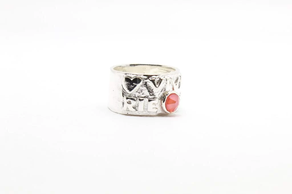 Anillo de Plata 925 Vive Ríe Ama con Cristal Swarovski Light Coral